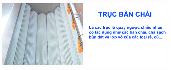 • Các con lăn bàn chải được bọc quanh trục quay nằm sát nhau, quay ngược chiều để tạo ra ma sát cọ rửa.