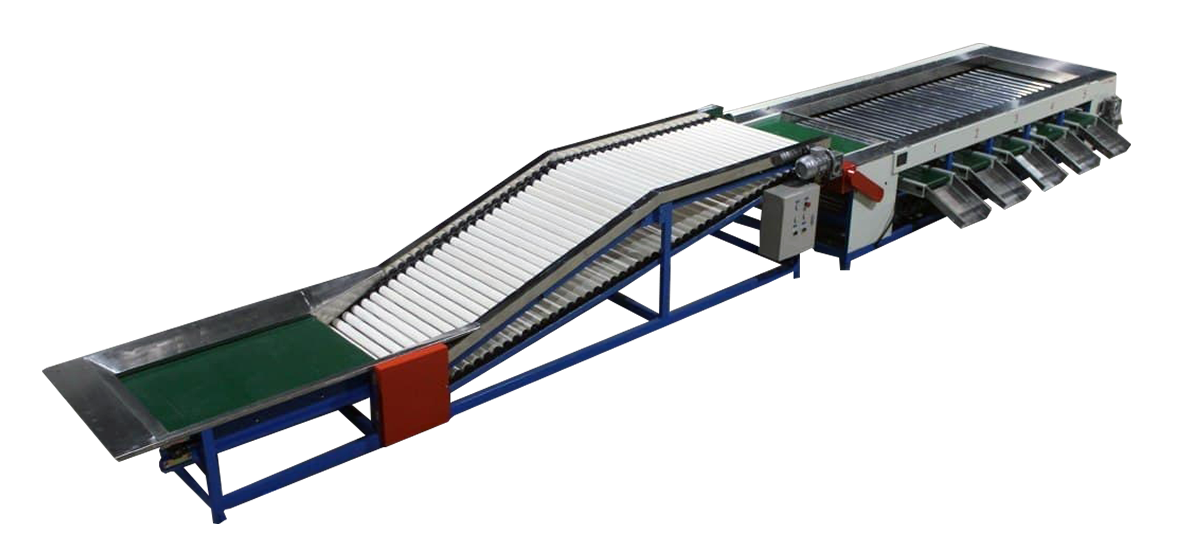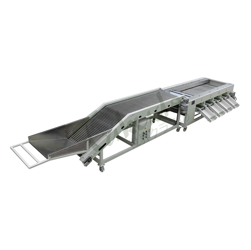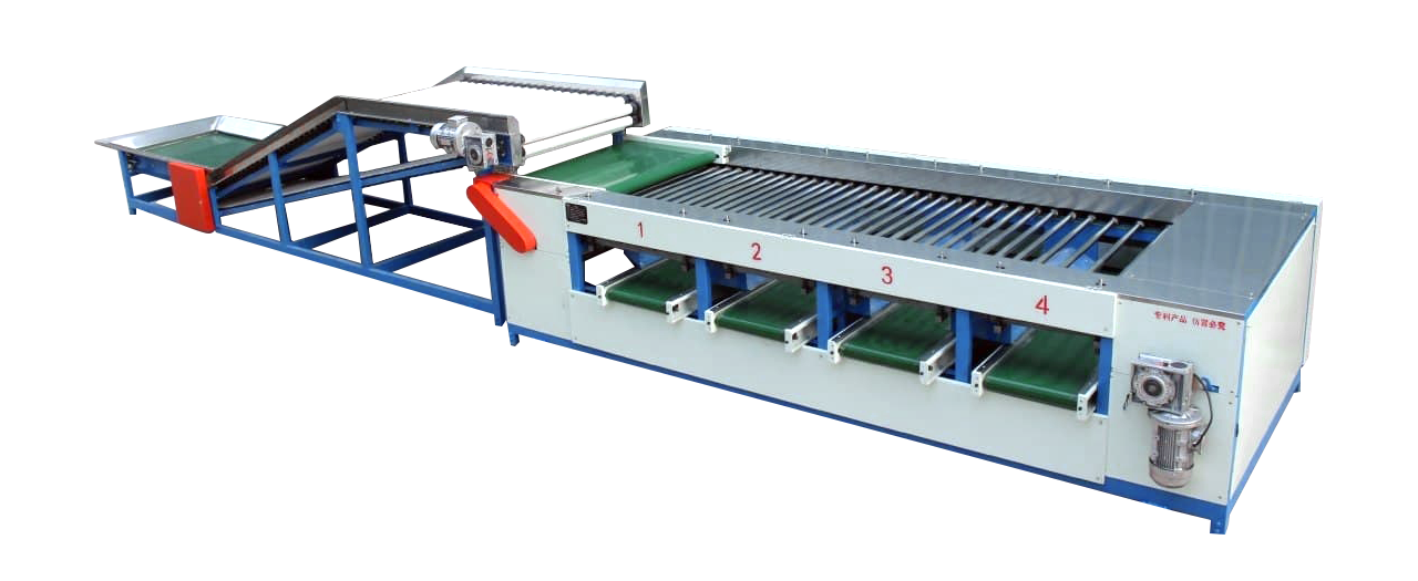 Máy gồm phễu & thang máy, bàn chải làm sạch, bảng kiểm tra và phân loại, thích hợp cho khoai tây, khoai lang, cà rốt, vv. với băng tải ở dưới cùng của phễu, sản phẩm đi từ phễu để bàn chải làm sạch một phần để loại bỏ bụi, sau đó được vận chuyển đến bảng kiểm tra, nơi phân loại hoa quả xấu. Sản phẩm sau phân loại đi ra theo các máng đánh số.