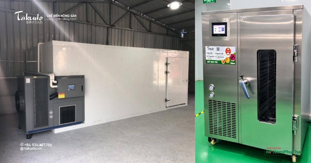 - Máy sấy lạnh: giá cao hơn, thường dùng cho sản phẩm giá trị cao, xuất khẩu